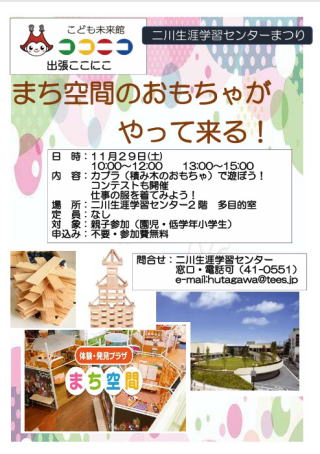次回の「ここにこサークル」は、令和7年10月17日(金)に開催する予定です。今後の開催状況はホームページ等でご確認ください。 午前10時〜11時30分 第2和室 地域の親子が自由に遊べる交流広場です。育児情報の交換・仲間作りの場所としてご利用ください。自由参加で無料です。直接会場にお越しください。 →イベント案内のページへ |